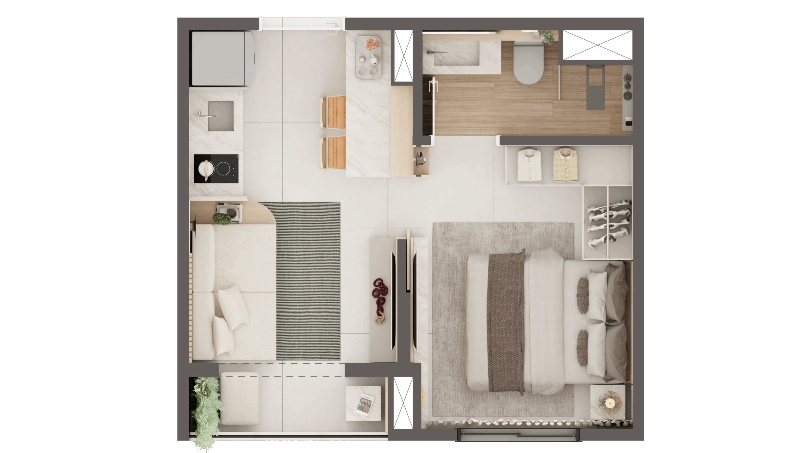 🏡 Metragens: Studios e 1 Dorm – 18m² a 33m²